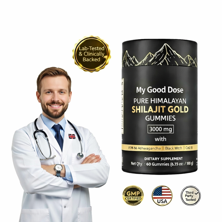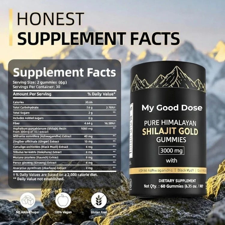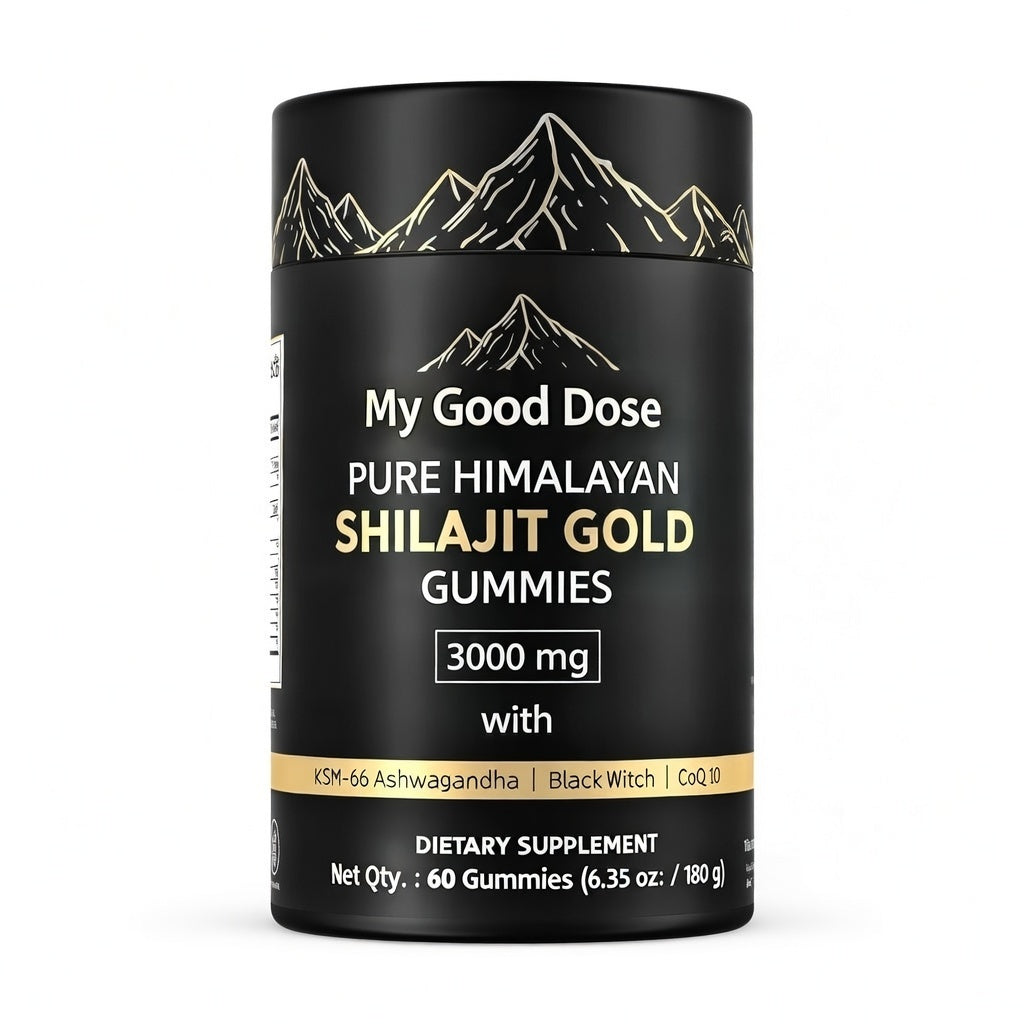 Restore your natural rhythm with MyGoodDose™ Shilajit Gold Gummies — a thoughtfully crafted blend of Pure Himalayan Shilajit, KSM-66® Ashwagandha, Black Musli, and Gokshura, designed to support daily energy, stress balance, and overall vitality.